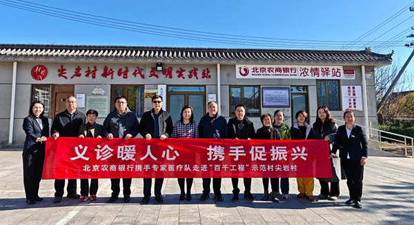 此次走进尖岩村,既是健康服务与金融赋能的深度融合,也是北京农商银行践行社会责任、助力“百千工程”走深走实的生动缩影。未来,北京农商银行将持续发挥金融主力军作用,整合医疗、政务、社会等多方资源,创新“金融+健康+服务”多元联动模式,把更多优质资源引向乡村、把更多暖心服务送到田间地头,以“农商温度”守护百姓安康,以“农商力量”托起乡村希望,携手绘就产业兴、生态美、百姓富的乡村振兴幸福画卷!