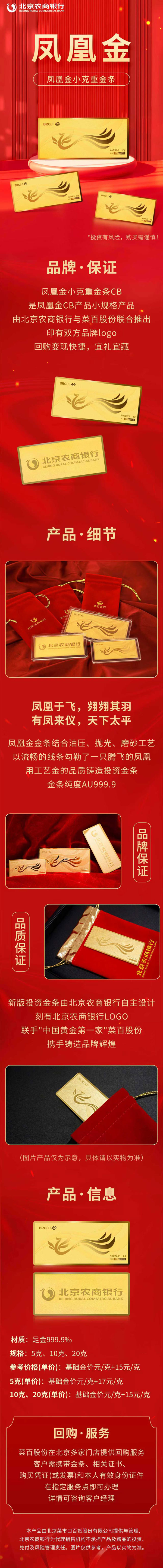(1)品质保证:新版投资金条由北京农商银行自主设计,刻有“北京农商银行LOGO”,联手“中国黄金第一家”菜百公司携手铸造。