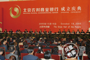 2005年10月19日,北京农村商业银行成立庆典在人民大会堂金色大厅隆重举行,标志着北京农村信用合作事业从此揭开了新的历史篇章。
